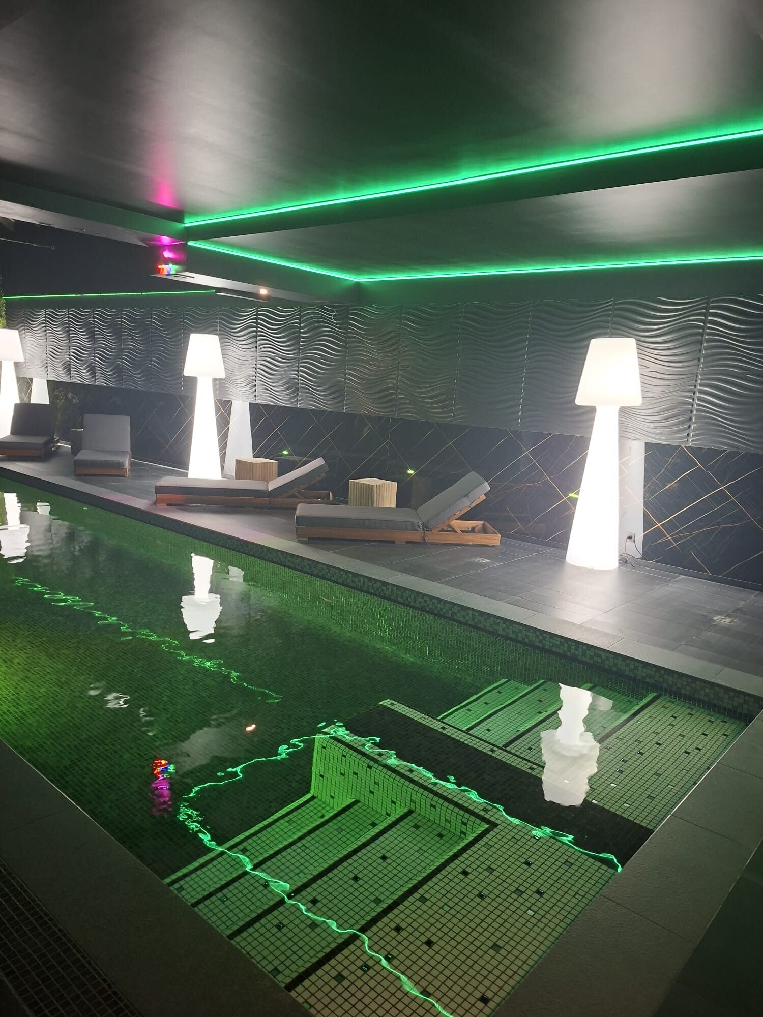 Bienvenue sur notre page 'Photo', conçue pour vous offrir un aperçu de l'univers unique de La Villa - Private Spa & Events. Plongez au cœur de nos installations impeccables et laissez-vous transporter par l'ambiance de détente, de luxe et d'intimité que nous avons minutieusement créée pour vous. Découvrez la piscine, le jacuzzi, le sauna et le hammam, tous pensés pour votre bien-être absolu.
